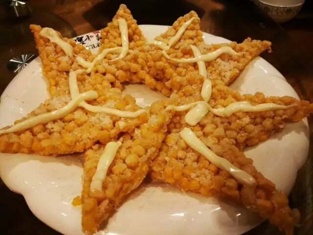 选用优质玉米粒,放入花生仁、红绿丝、干生粉、精盐、味精、砂玉米烙玉米烙,糖拌匀。炒锅烧至六成热时放入食油滑锅,然后将玉米粒倒入锅内,摊成圆状,再将余油倒入,使玉米烙定型即成,切刀装盘。一口咬下去满口而来的都是玉米的香味,松脆可口,但是患有眼疾的童鞋不宜多食,过敏者的童鞋就忌食哟~